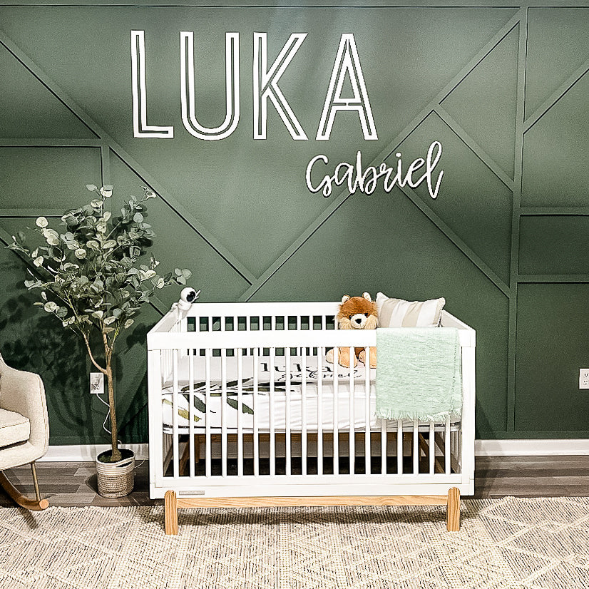 Sizes range from 18” - 48” WIDE (from left to right of the first name). The height will vary depending on the amount of letters in the name. If you need specific measurements on the height of the name please contact us first. Please keep in mind, the more letters in the name, the smaller the font will be. Liam at 36” wide will be taller than Jackson at 36” wide. Please refer to our size charts in the listing pictures for more details.